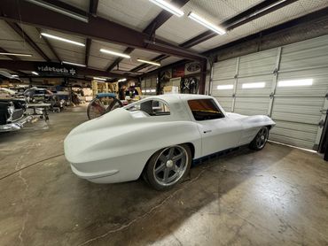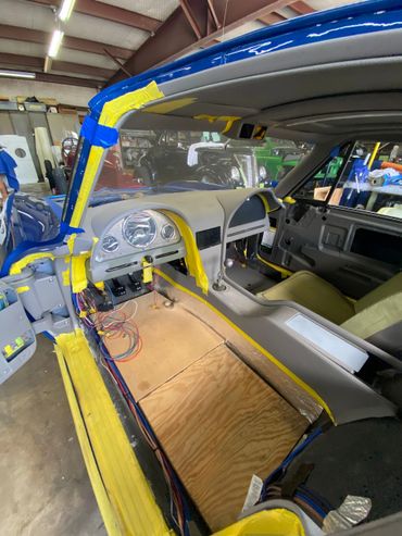 This car came from another shop and is here now to be finished. Some things that entails; Full custom interior, a complete repaint and bodywork, flushing the glass, and wiring